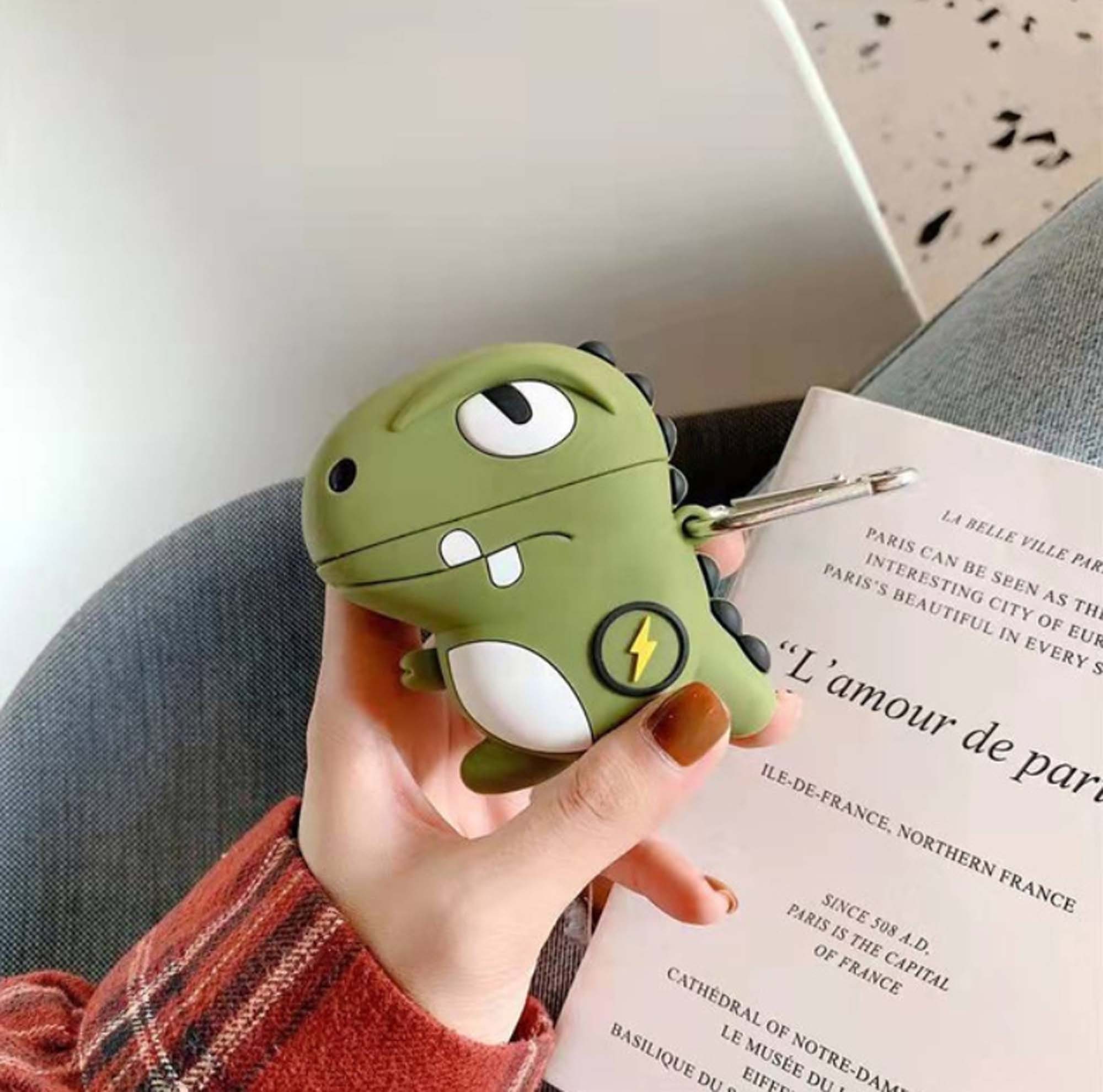 Cute Green Chibi Dinosaur Airpod Case Silicone Case For Apple Airpods 2 And Pro Cosplayfu Com